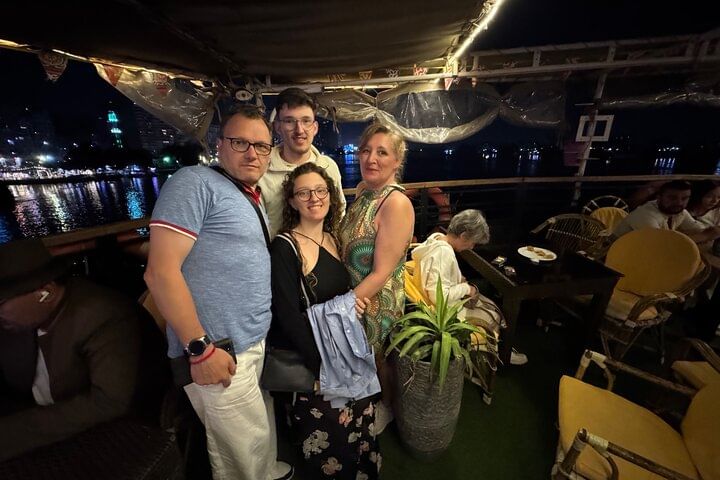 We will pick up you from your hotel or location by private driver ,representative and going to the port on the Nile River (the longest river ),you will have traditional Egyptian food, belly dancers and tanora show, music, live band ,Take pictures of the show and of the wonderful night life city from the top-deck.
