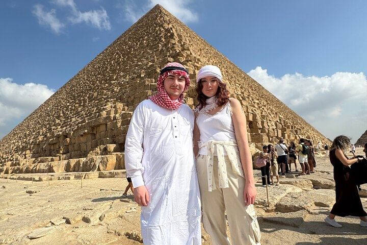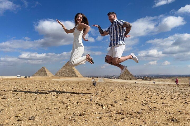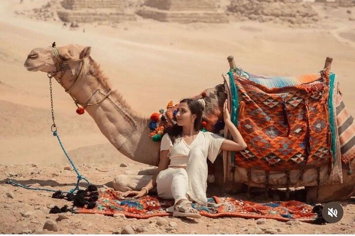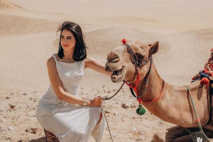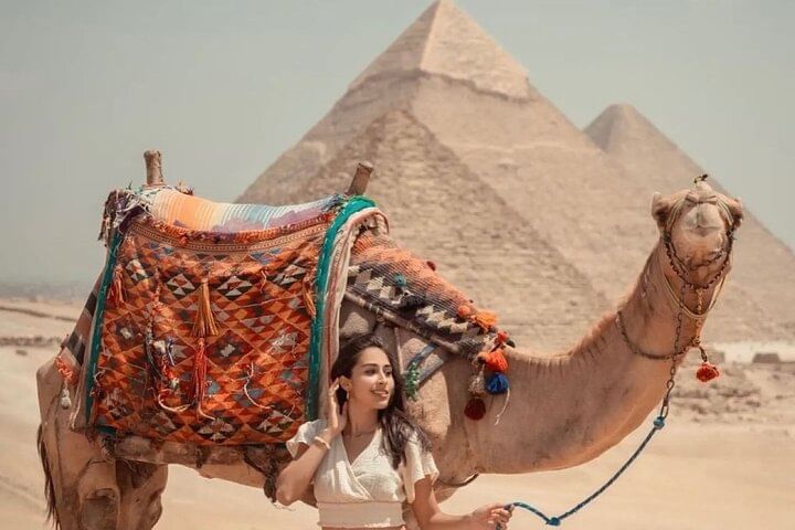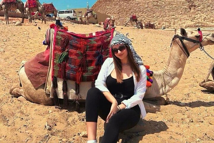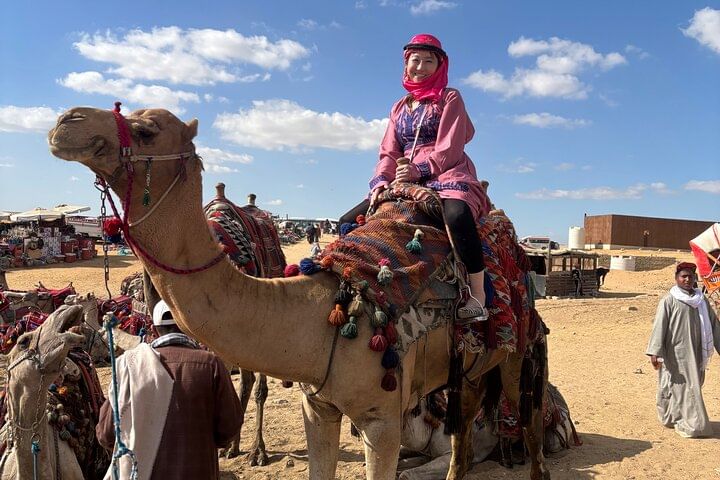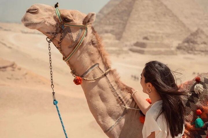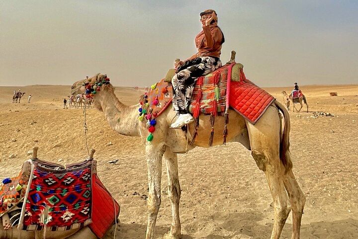 Enjoy the Giza pyramids area from above camel or horse carriages