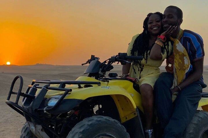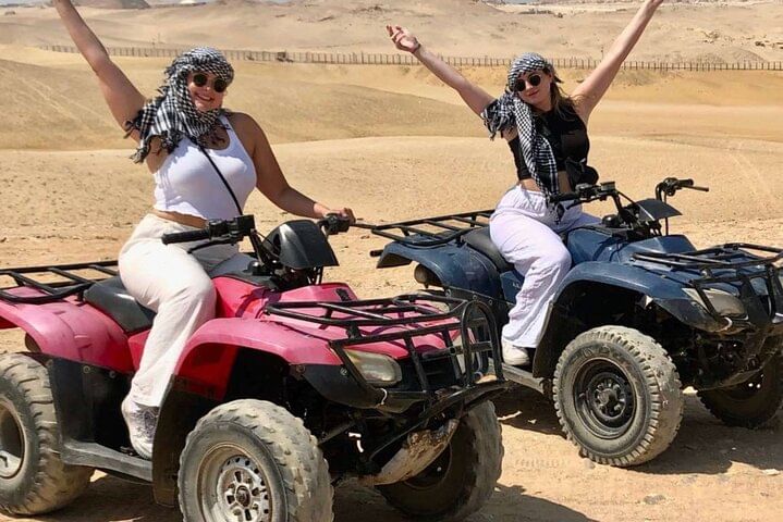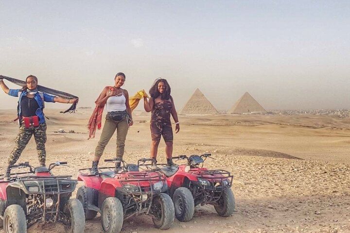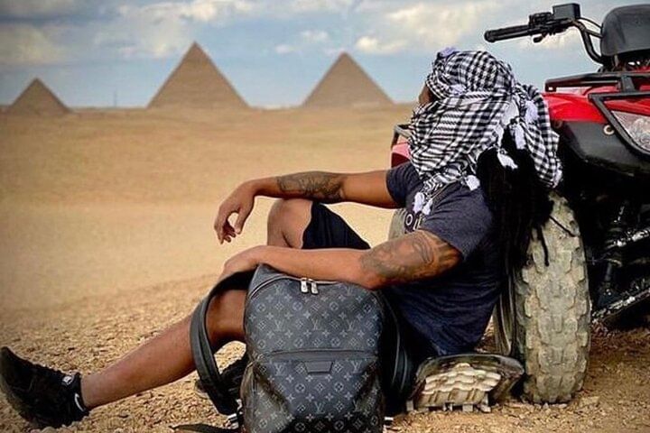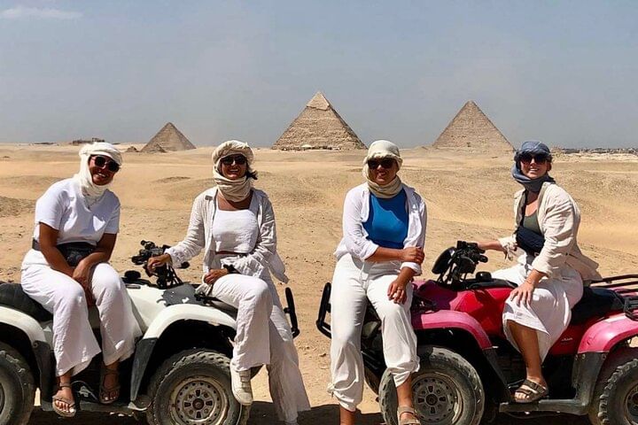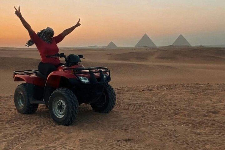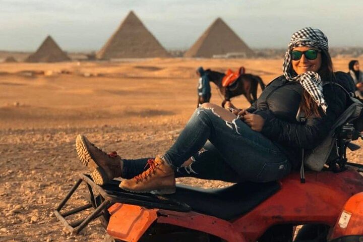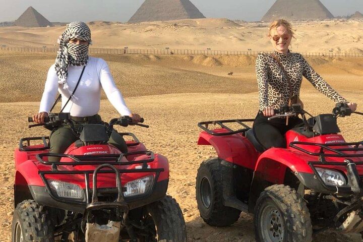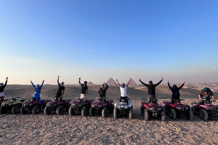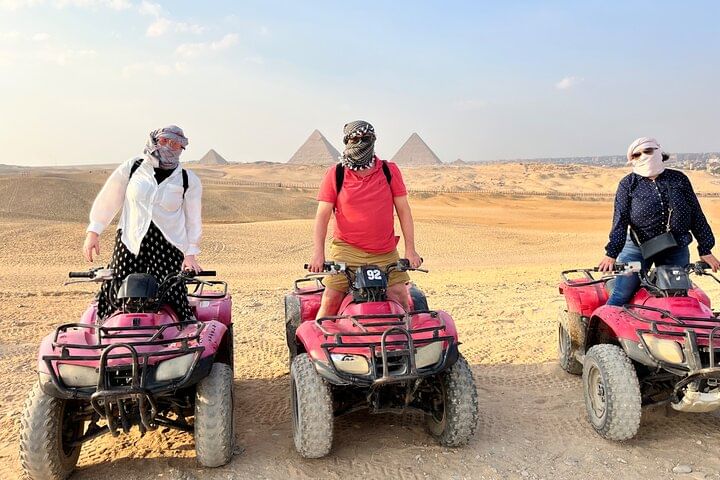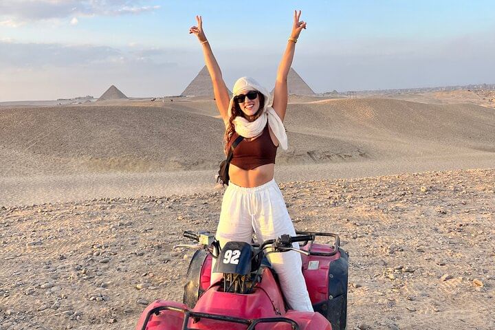 Along the way, ride a camel through the desert, get social pictures Try the local Egyptian lunch,After a break to shop for souvenirs .take the experience of riding quad bike at the desert with back ground of the pyramids to explore the desert.
